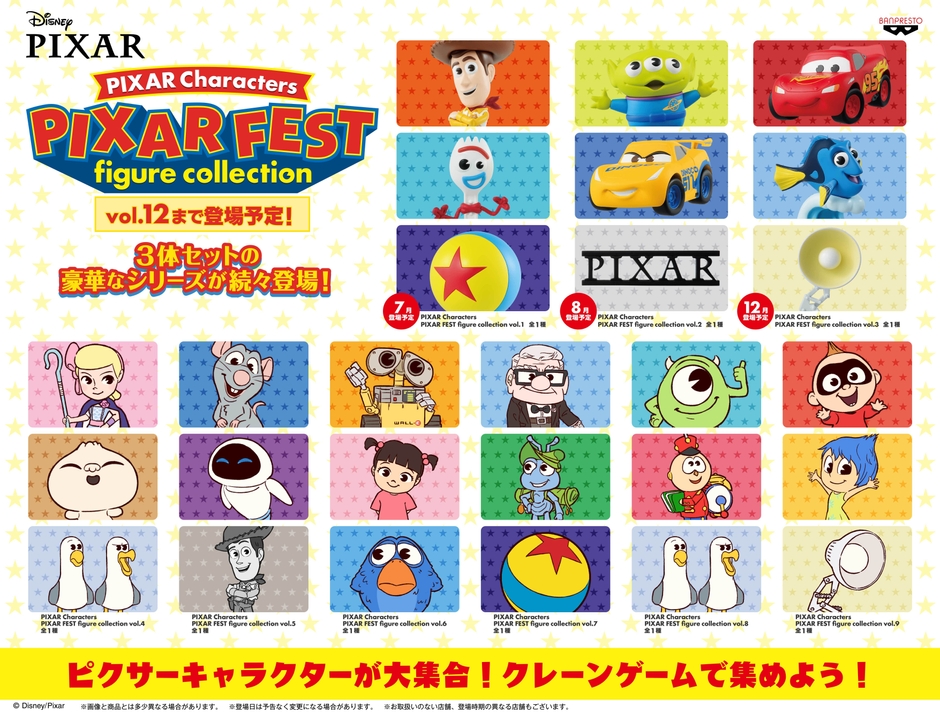 株式会社BANDAI SPIRITS プライズ事業部のバンプレストブランドから、映画『トイ・ストーリー』25周年を記念し、ピクサー作品を題材としたアミューズメント専用景品の新シリーズ『PIXAR Characters PIXAR FEST figure collection(ピクサーキャラクターズ ピクサー フェスタ フィギュア コレクション)』が誕生します。