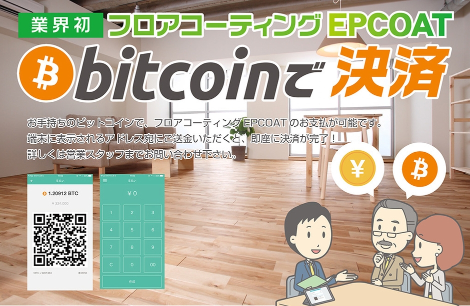 昨今、高騰を続ける仮想通貨ビットコインは、早期から保有していた方にとって大きな財産となっています。その一方で、日本ではまだ使い先が限られているため、せっかくのビットコインを有効活用できていないという声も聞かれます。また、フロアコーティングサービスは、いまだその価値が広く世の中に浸透しておらず「贅沢品」という認識の消費者の方も多いのが現状です。