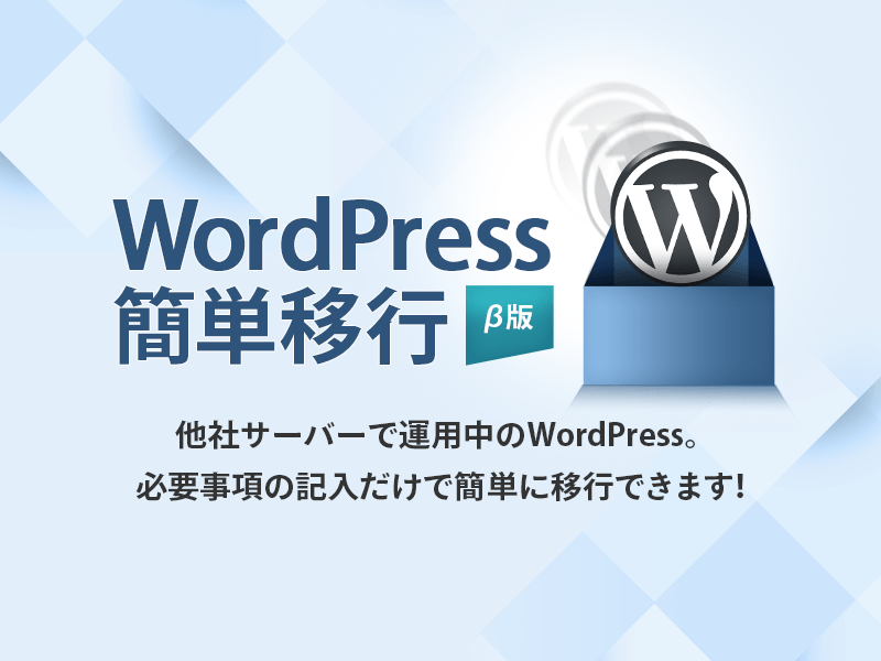「WordPress簡単移行」機能(ベータ版)は、他社サーバーで運用中のWordPressを最短5分で簡単に移行できる機能です。