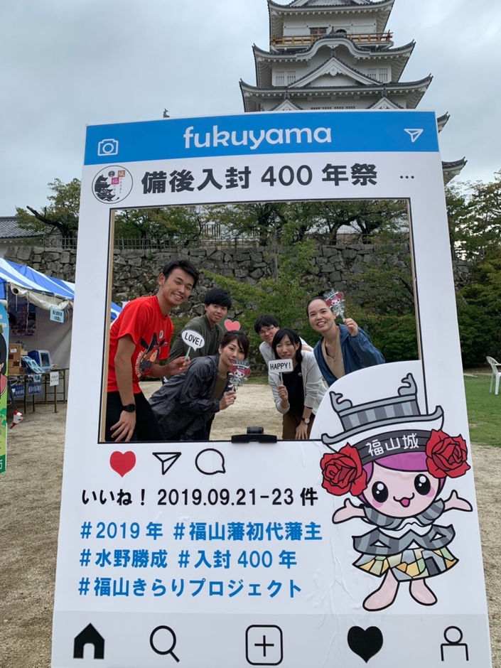 福山市(広島県)で9月21日(土)に開催された「初代藩主水野勝成備後入封400年祭」で福山城とばらのイメージキャラクター「ローラ」をコラボした「お城ローラ」が発表されました。「お城ローラ」は,市の若手職員による「福山きらりプロジェクト」が,子どもたちなどの若い世代にも,福山城をPRしたいという思いから考案されました。イベント当日は,「お城ローラ」のぬりえイベントや,会場の各所になぞときを設置した「なぞときゲーム」を実施し,会場の子どもたちに大人気でした。また,パネルを制作し,福山城をバックに写真が撮れるフォトスポットを設置。SNSで発信してもらうなど,小さい子どもから大人まで楽しんでもらうことができました。