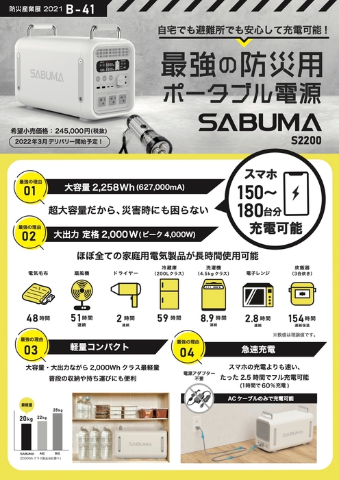 【防災用ポータブル電源SABUMA】防災産業展2021に出展します。