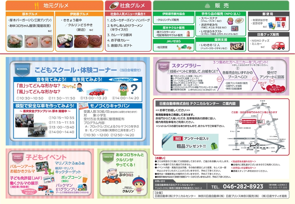 他にも地元の味覚や社食のメニューを堪能できるグルメコーナーや、お子さま向けスクール・体験コーナーなど、ご家族で楽しめる催しも盛りだくさんのフェアとなっていますので、皆さまこぞってお越しくださいませ。