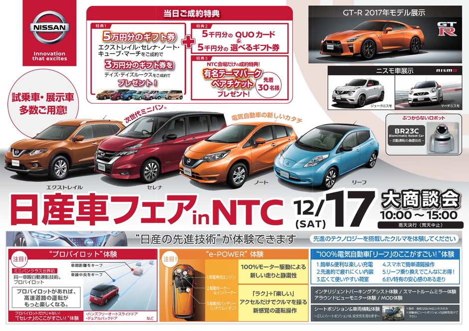 12月17日(土)大商談会「日産車フェア in NTC」を開催します。