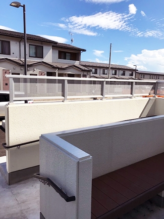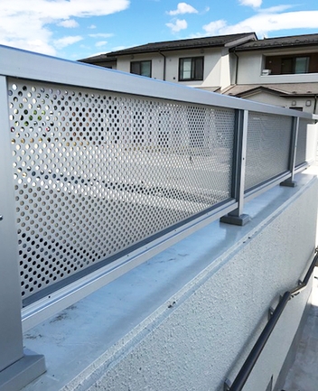 岩手県盛岡市にあるマンションの修繕工事。手すりとパンチングメタルを杉田エースが納入。施主からのコストに関する要望に応える為に、二社に分離発注した。