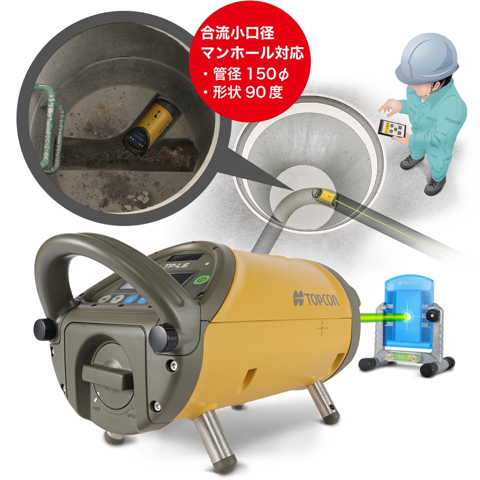 合流・90度曲がり小口径マンホールに対応!! スマートフォンで状態を確認 下水道管工事用パイプレーザー『TP-L6』シリーズを発売