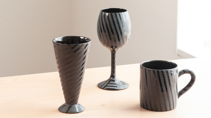陶器では不可能とされた一体成型によるワイングラス型 SAKE CUPなどを出品