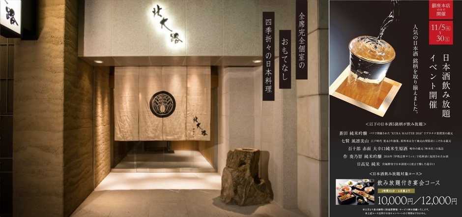 名称:北大路 銀座本店リニューアル記念 期間限定「日本酒限定飲み放題」