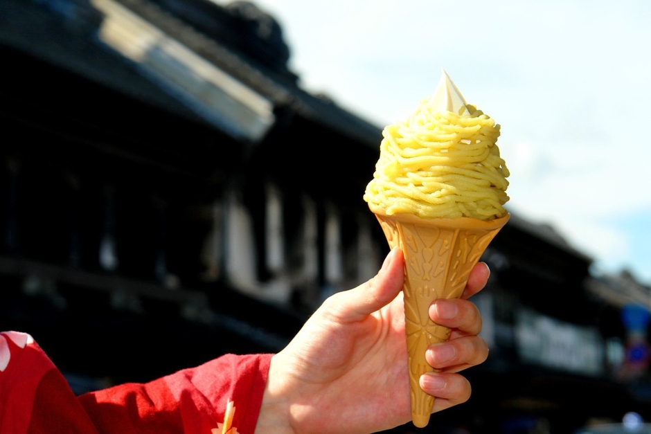 超贅沢!川越の食べ歩き新スイーツが熱い! 「川越芋のモンブランソフト」メガ盛りキャンペーンを開始! ~着物・浴衣で来店のお客様限定! 川越芋を贅沢に使用した濃厚ソフトを提供~