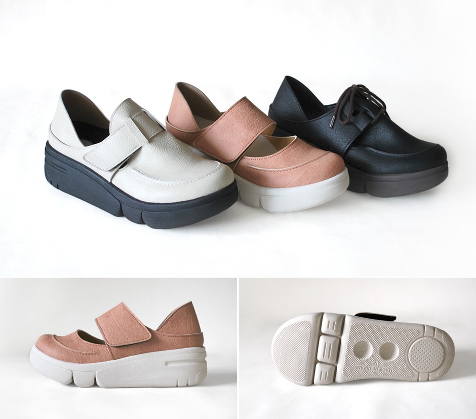 厚底ですが屈曲性があり、厚底だけど軽く履きやい靴タイプです。