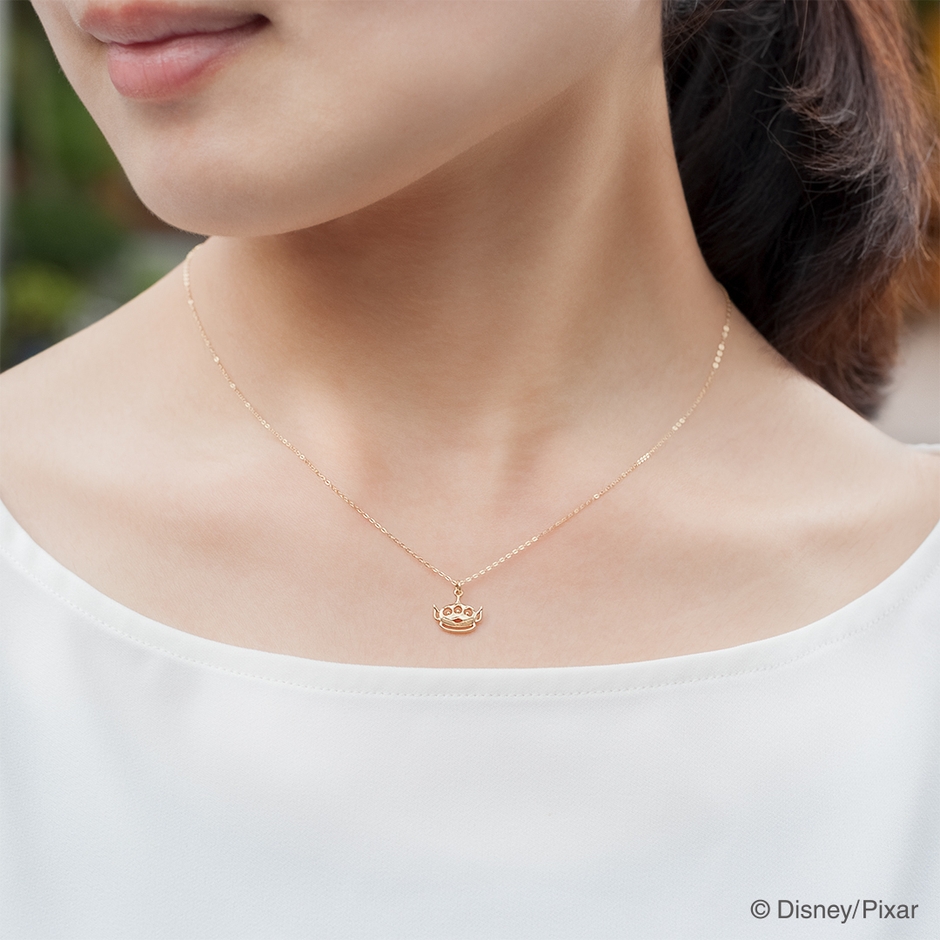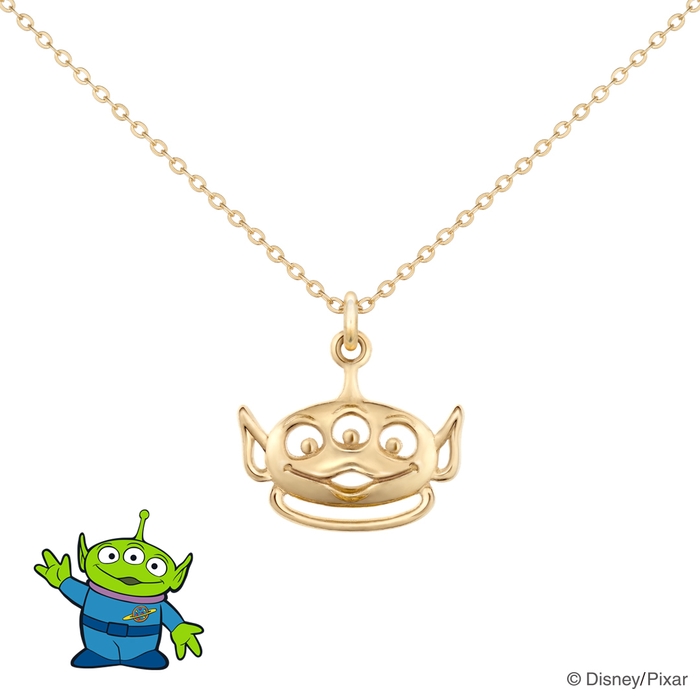 『トイ・ストーリー』シリーズのエイリアン。トレードマークの三つ目とちっちゃく開いた口がキュート。エイリアンのおちゃめな表情を、繊細な透かし模様で表現。K18の上質な存在感が、大人の可愛らしさを演出します。