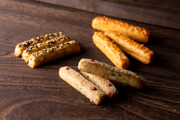 仙台味噌とふきのとうをブレンドしたほろ苦さと胡麻の香ばしさに、柚子胡椒と山椒のしびれるような辛味をアクセントにした「スパイス・スティックブレッド柚子胡椒」(写真左)。オリーブやアンチョビ、にんにくのタプナードを合わせたハーモニーにピンクペッパーの爽やかな酸味が漂う「スパイス・スティックブレッドピンクペッパー」(写真中央)。唐辛子やチリペッパー、ブラックペッパーのスパイシーさが後を引く「スパイス・スティックブレッドチリ」(写真右)は奥深いスパイスと小麦の風味をお楽しみいただけます。スパイス・スティックブレッドは、冷えたビールとの相性も抜群。ほどよい辛さとビールの苦みが調和し、ハーブビールのような香りが広がります。ウェスティンがお贈りする夏らしい味わいをお楽しみください。