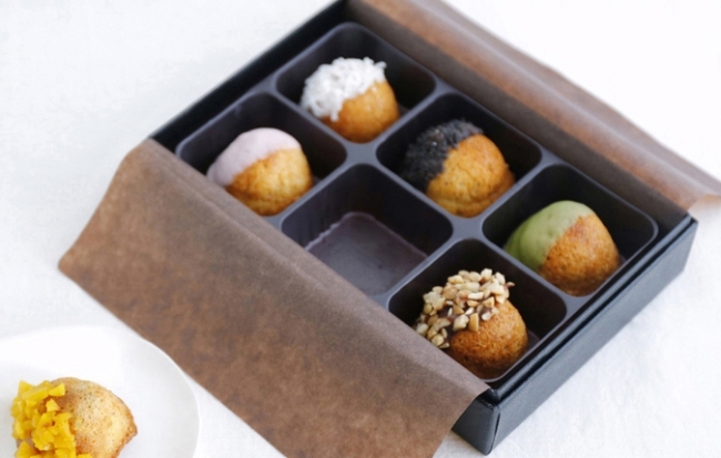 ダックワーズとフィナンシェの素材を掛け合わせた食感も楽しい焼き菓子です。見た目も華やかなでギフトにもぴったりな餡子入りの一口焼き菓子です。