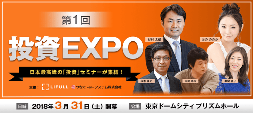 総掲載物件数No.1の不動産情報サイト「LIFULLHOME'S」等の住生活情報サービスを提供する株式会社LIFULL(ライフル)(旧社名:株式会社ネクスト、本社:東京都千代田区、代表取締役社長:井上高志、東証第一部:2120)は、2018年3月31日(土)に東京ドームシティ プリズムホール(東京都文京区)にて「第1回投資EXPO」を開催いたします。