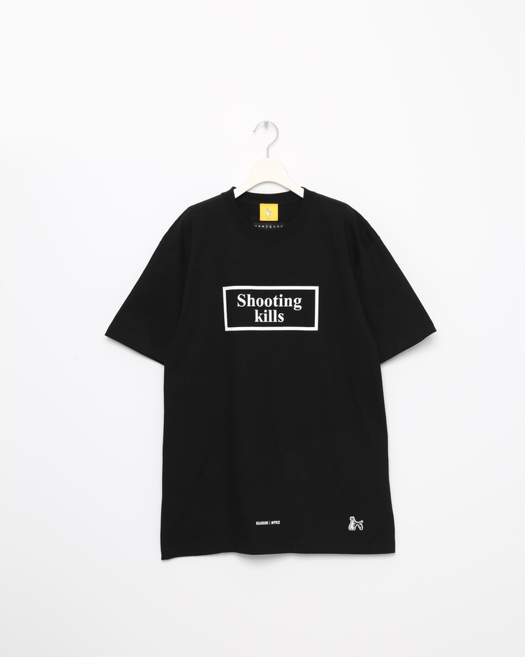 #FR2のアイコニックなうさぎのキャラクターとクロスガンを組み合わせた刺繍に、roargunsのテーマの一つでもある“NO SHOOTING”と、ウサギのカメラマン#FR2の“SHOOTING”を掛け合わせた「SHOOTING KILLS」のロゴ入りベースボールキャップ、フーディー、Tシャツの合計8型が3月9日から発売になります。