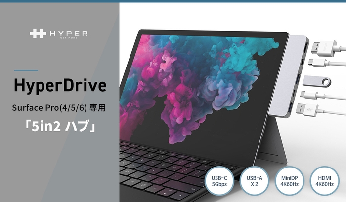 HYPER、Surface Pro (4/5/6) 専用5 in 2 USBハブ発売