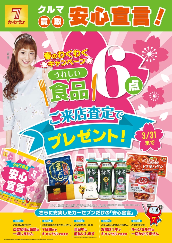 カーセブンにご来店査定で食品6点がもらえる! 春のわくわくキャンペーンをスタート