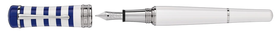 モンブランと女性たち…。創業当時からモンブランは淑女たちにふさわしい筆記具を提案し続けてきました。そして、20世紀に颯爽と登場した働く女性たちもそれを支持し続けてきました。男性から借りるのではなく、女性のしなやかな手をさらに美しく見せ、棒紅やアイライナーと一緒にハンドバッグにすっきり収まるスマートさ。そして、インクが漏れてドレスを汚す心配がない「安全性」も、モンブランと女性たちの長き蜜月を支え続けてきた大きな要素でしょう。また、ポール・ポワレやココ・シャネル等によってもたらされた20世紀初頭のファッション革命は、なによりもモンブランと女性たちを強く結びつけました。窮屈なコルセットやクリノリンから解放され、自由に都市を闊歩する新時代の女性にとって、筆記具は不可欠なツールだったのです。「モンブラン ボヌール」は、当時の女性たちの前向きで生き生きした毎日を、モダンデザインで再現したコレクションです。シンプルでクリーンなシルエットは、審美性と機能性を両立させたドレスのように時代を経ても色あせない美しさを感じさせます。軽やかなカーブを描くボディに配されたメタルフィッティングの絶妙な位置は、代表的な1920年代ルックのローウエストドレスのような印象を加味しています。フランス語で「幸福」を意味する「ボヌール」と名付けられたこのコレクションは、当時の女性たちの前向きで生き生きした毎日を表現しており、1920年代のローウエストドレスのようなシルエットが特徴的です。今年の新色は、佳き時代のフランスのリゾートを思わせるマリンルックをイメージして、さわやかなブルーとホワイトのボーダーが小粋なムードを醸し出しています。万年筆のほか、使い勝手の良いボールペンやローラーボールもラインナップしています。