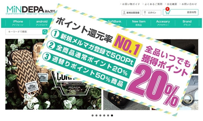 ポイント還元率No.1サイト宣言!! 加熱式たばこ・スマホケースECのみんデパ本店で お買上金額の20%を還元する独自ポイント機能を 9月15日(金)実装開始
