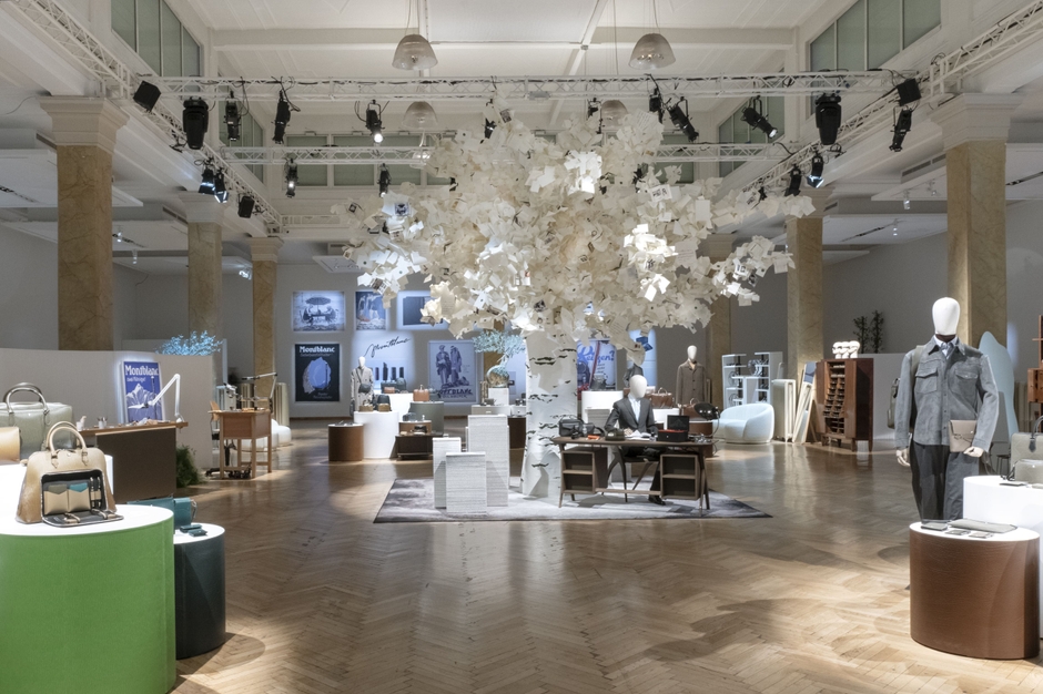 ショールームの中心には、紙だけで制作されたアートインスタレーション“The Tree of Writing”が設置され、モンブラン アーティスティック ディレクターのマルコ・トマセッタが選んだインスピレーション溢れる名言がのせられています。生い茂る葉や枝がショールームを見下ろす“The Tree of Writing”は、書くというモンブランのルーツが広がり、現在のコレクションにインスピレーションを与えたように、書くことで時間と空間を超えて人々とつながり、記憶をとどめ、何世代にもわたってインスピレーションを与え続けられることを象徴しています。