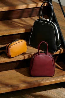 ラインナップを代表するのはレトロなボーリングバッグをインスピレーションソースに、アニエスベーが得意とする「グラフィック」「ジオメトリック」の要素を取り入れ、モダンに進化させた新作“Suzy”。ボディカラーはブラック、ボルドー、マスタードの3色で、バイカラーの配色がポイントです。大小のハンドバッグ、ショルダーバッグの3型からライフスタイルに合わせて取り入れれば、洗練された秋のスタイリングが完成します。