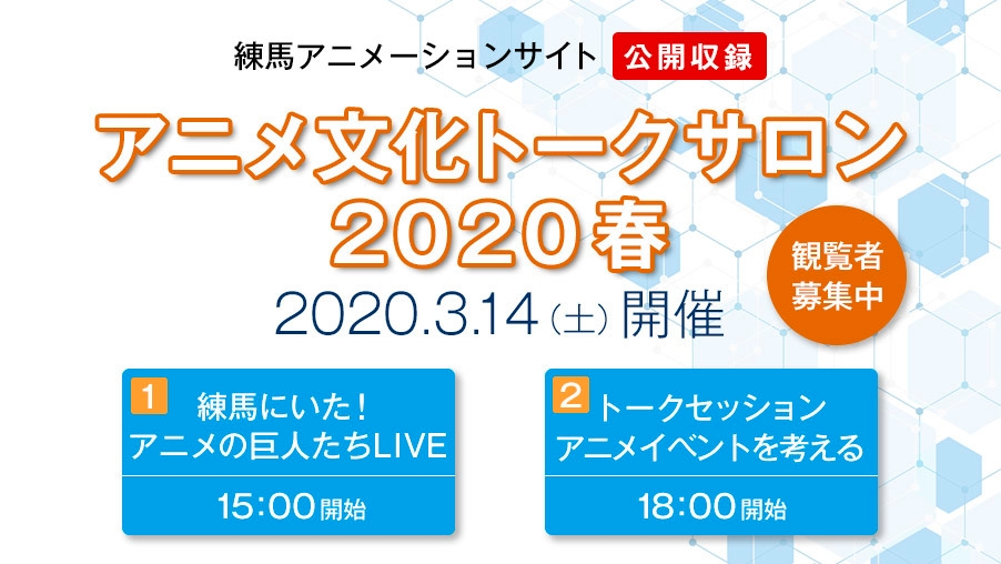 練馬アニメーションサイト公開収録 「アニメ文化トークサロン2020春」3月14日(土)開催決定!