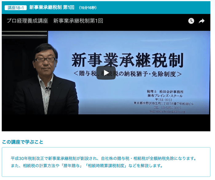 「プロ経理養成講座」、「新事業承継税制」の無料動画を配信開始! 平成30年度税制改正で自社株の相続税・贈与税が 全額(100%)納税免除に!