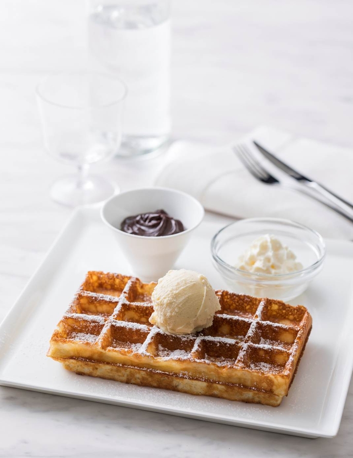 ベルギー ブリュッセル、グラン・プラス店の人気看板メニュー。大き目の長方形と軽い食感が特長で、生クリームや濃厚な味わいのチョコレート ソースをディップしてお召し上がりいただきます。