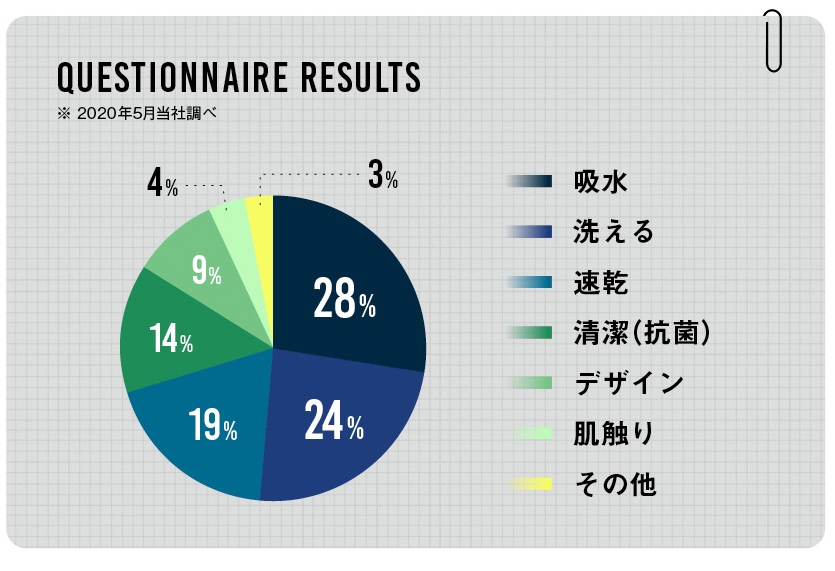 さらにSNSを通じてバスマットに求める条件のアンケートを取り、より消費者目線で求めていることを追求しました。アンケート結果を要約すると「吸水力があって洗えてすぐ乾く」というのがバスマットに求める理想でした。