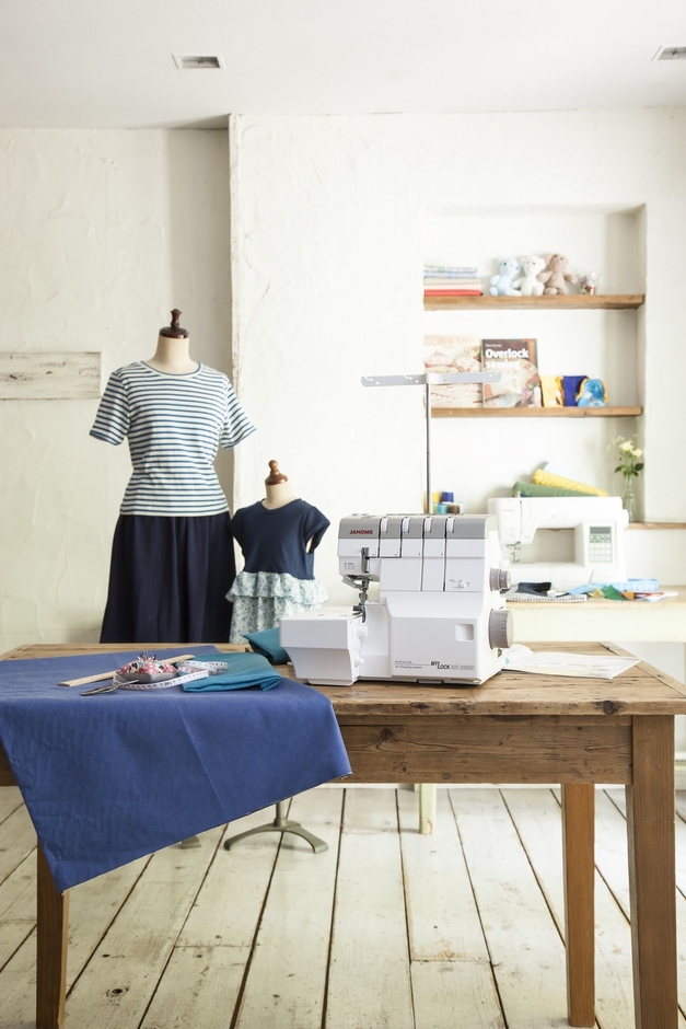 小型ロックミシンは、縫い・縁かがり・布の裁断が一度にできる優れた商品で、素早く簡単に美しく仕上げることができます。かがり縫い、飾り縫いの他、Tシャツやニットワンピースなど伸縮性のあるニット生地を使用した洋服作りも気軽に楽しむことができ、ソーイングの幅が広がります。
