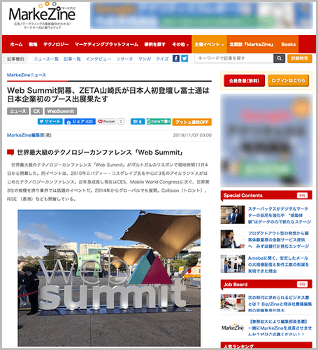 テクノロジーカンファレンス『Web Summit』でのCIS・ワークショップ登壇の様子がマーケター向けメディア「MarkeZine」および「ECzine」のニュースとして掲載されました