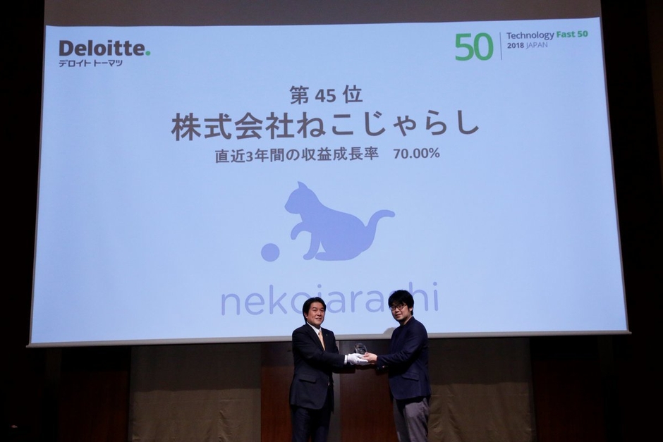ねこじゃらし、テクノロジー企業成長率ランキング 「2018年 日本テクノロジー Fast50」で45位入賞