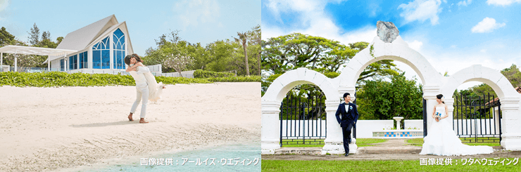 常夏の島・グアムは、海外ウェディングスポットとしても人気を誇っています。どのチャペルも目の前に海が広がる絶景ロケーションで、美しい空と海が新郎新婦を祝福してくれます。また、日本から約3時間半という短いフライト時間に加え、時差が1時間と少なく、小さいお子様や高齢者の親族にも安心して渡航していただけます。渡航費用も比較的リーズナブルなので、他の海外に比べると、より多くの列席者に参加してもらえるのも嬉しいポイントとなり、家族や友人との絆を大切にしたい新郎新婦にピッタリの場所です。すでに国内挙式を済ませている方も、ビーチリゾートでのウェディングフォトを撮影して二人の記念にするのもおススメです。ショッピングに加え、海・陸・空のアクティビティやスパ、カルチャー体験、ゴルフなど、ビフォー&アフターウェディングを満喫することができるので、ゲストにもそれぞれのグアムを楽しんでいただけます。