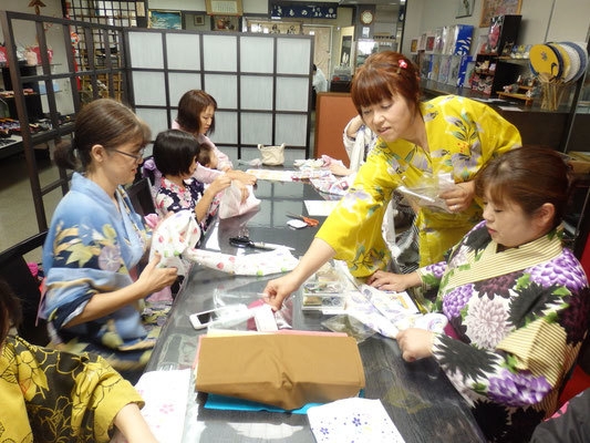 「手ぬぐいで、ゆかたに似合うシュシュを作ろう」の様子