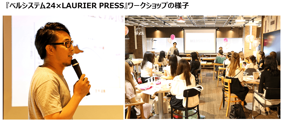 株式会社ベルシステム24(本社:東京都中央区、代表取締役 社長執行役員 柘植 一郎、以下ベルシステム24)は、SNSを活用した情報発信により、多くのフォロワーを擁する「インフルエンサー」の働き方を支援する「インフルエンサー応援プロジェクト」を開始しました。本プロジェクトの取組のひとつとして、エキサイト株式会社(本社:東京都港区、代表取締役社長:手塚正純、以下エキサイト)が運営する、かわいくなりたい女子を応援する情報発信メディア「LAURIER PRESS(ローリエプレス)」のイベントに登壇し、インフルエンサーにあこがれを持つ大学生を中心とした「ローリエガールズ」に向け、自身の強みを認識し、磨いていくための考え方や、実社会で役立つビジネスコミュニケーションについてのトークセッションを行いました。