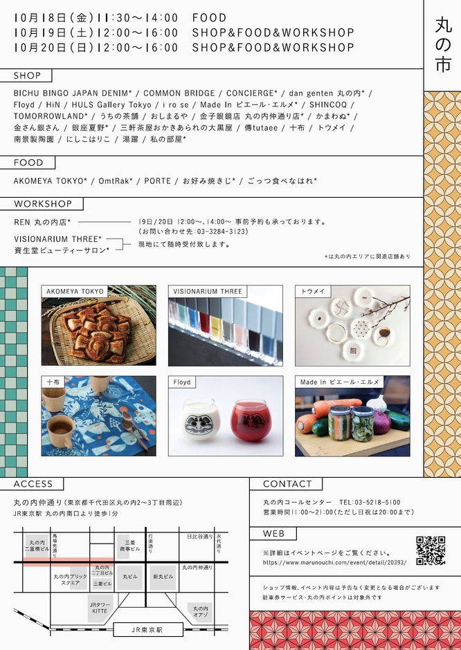 【イベント概要】「丸の市」は日本の中心地「東京駅前」より日本文化を「ファッション」「アート」「フード」などさまざまな切り口で発信していくイベント。今回のテーマは「JAPAN CULTURE」。
