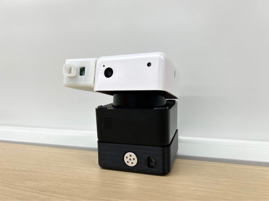「Care Cube」は、人とのインターフェイスに、エッジAI搭載カメラ端末「PLEN Cube」を使用しています。顔を近づけると自動的にプログラムが起動するため、スマートフォンやパソコン用のアプリケーションに比較して、誰でも操作がしやすいものとなっています。また通常のIT機器に搭載されるマイクと異なる単一指向性マイクの利用により、騒音環境下でも音声を的確に把握できるよう工夫しました。