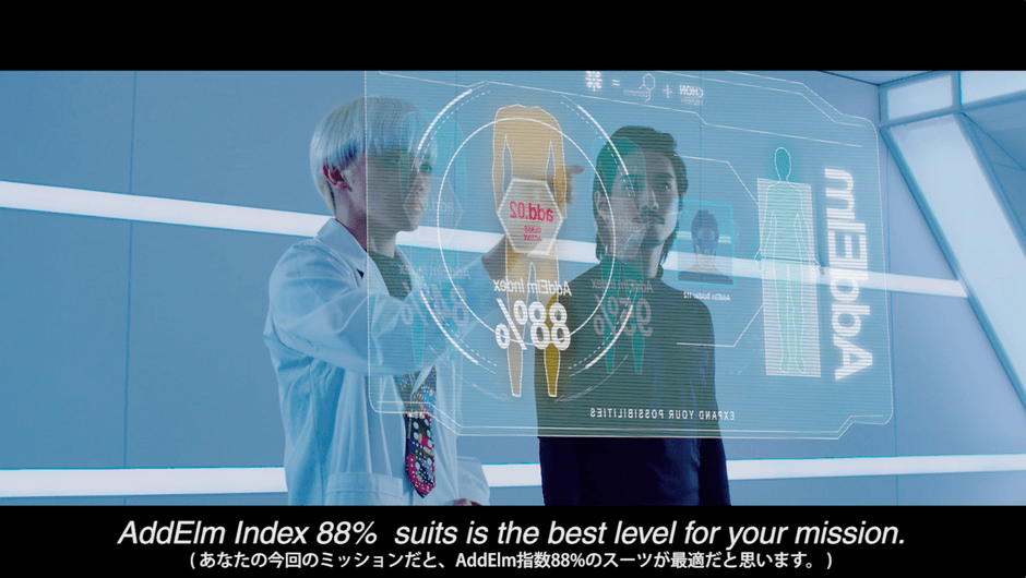 映像の中に協賛企業の「AddElm」関連商品が使用されることで、テクノロジーの訴求と同時に、商品の告知や具体的な使い方をスタイリッシュに表現できます。