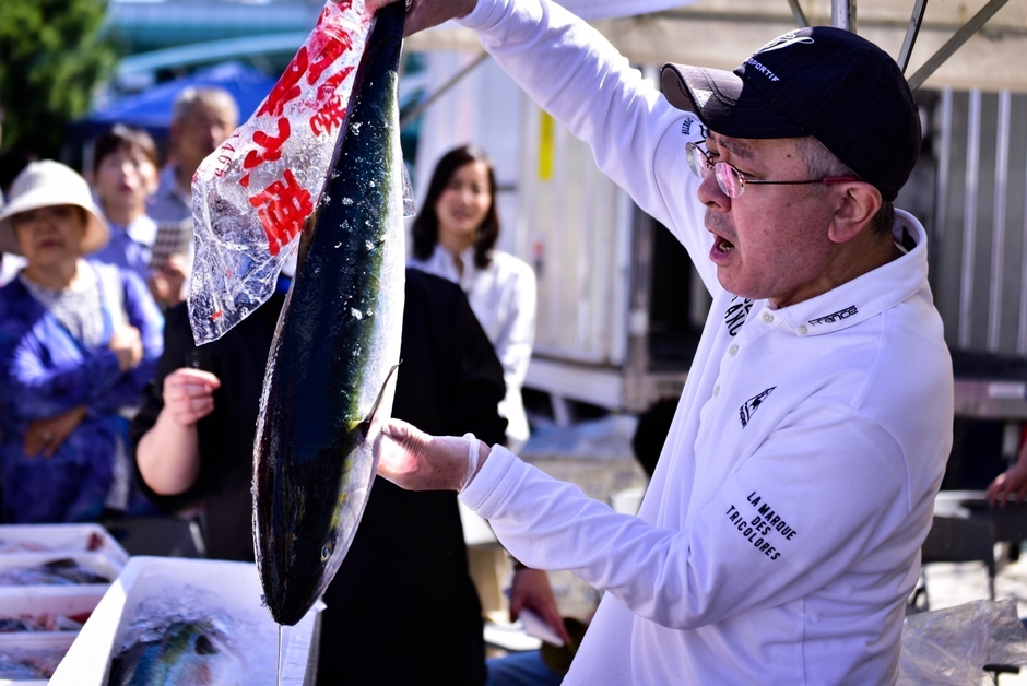 一番人気は、セリ体験ができる「大セリ大会」です。何種類ものまるもんの魚(処理していない1匹まるまるの魚)をセリ落とす体験ができます。せり上がり方式で、500円からスタートして、600円、700円と欲しい値段を参加した方々が声を張り上げてセリ合います。最終高値をつけた参加者が魚をゲットできます。普段スーパーでは、見かけない天然のお魚をセリ落とすことができ、毎回大好評の企画です。