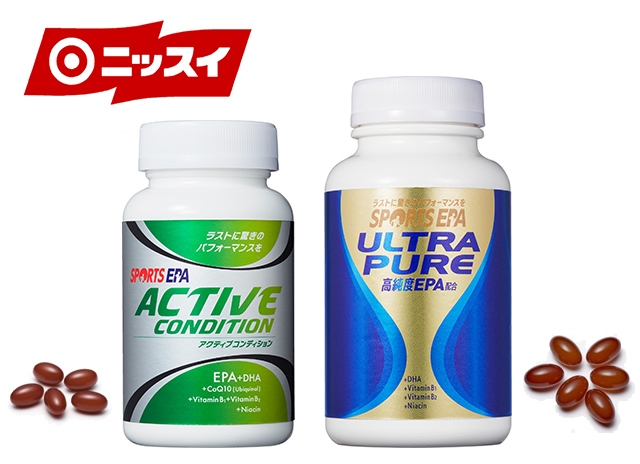 「SPORTS EPA」は、水産加工大手の日本水産株式会社(以下「ニッスイ」)によって製造されるサプリメントで、魚油に含まれる成分のひとつであるEPA(エイコサペンタエン酸)の機能をスポーツの分野に特化させた商品であり、アスリートやスポーツを楽しむ方々に持久力の向上や疲労の軽減を実感していただいています。