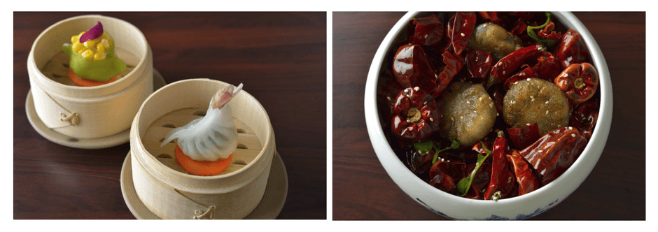 四川料理と広州料理とは、料理を作る工程も考え方も異なり、これまでひとつの皿の上で融合が難しいとされてきました。3人が異なるキャリアを持つ中国料理の料理人であることで、それぞれの技術やアイディアを出し合い、季節感を感じられる料理として、四川料理と広州点心料理の融合を実現しました。10月からは、「李白コース」(1万円税込)に加え、上海蟹を使った特別コースを加える予定です。