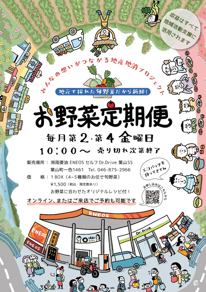 神奈川県湘南エリアを中心に15店舗のガソリンスタンドENEOS、プロパンガス、ENEOS都市ガス、ENEOSでんき販売を展開している湘南菱油株式会社(本社:神奈川県横須賀市森崎1-5-24、代表取締役:大庭 大、以下 湘南菱油)は【お野菜定期便プロジェクト】を発足致しました。