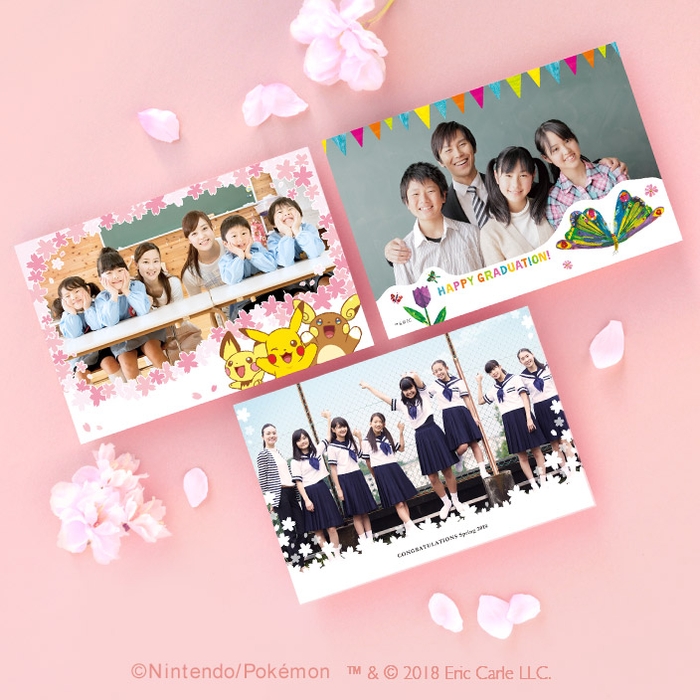 株式会社TOLOT(本社:東京都江東区、代表取締役社長:末松 亜斗夢)は、お気に入りの写真1枚でポストカードが作れる『TOLOT Card』を提供しています。ライフイベントに合わせたデザインを複数用意する中で、卒園・卒業祝い用のテンプレートに今年は『ポケットモンスター』と『はらぺこあおむし』のデザインを追加し、1セット30枚入り600円(税込み・送料無料)で2018年1月31日(水)に受注を開始しました。