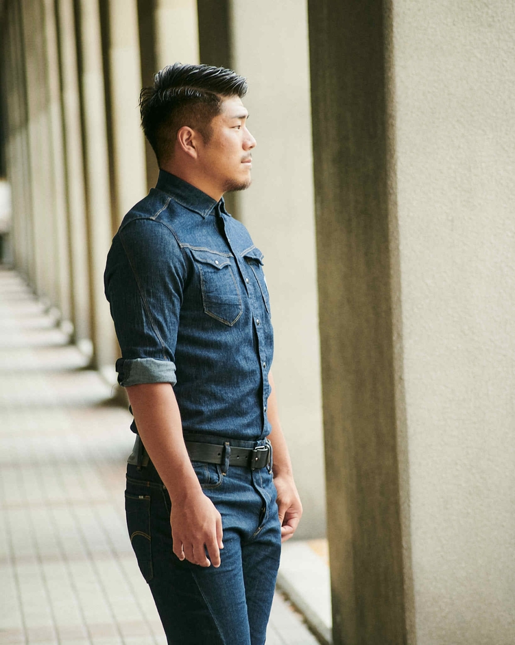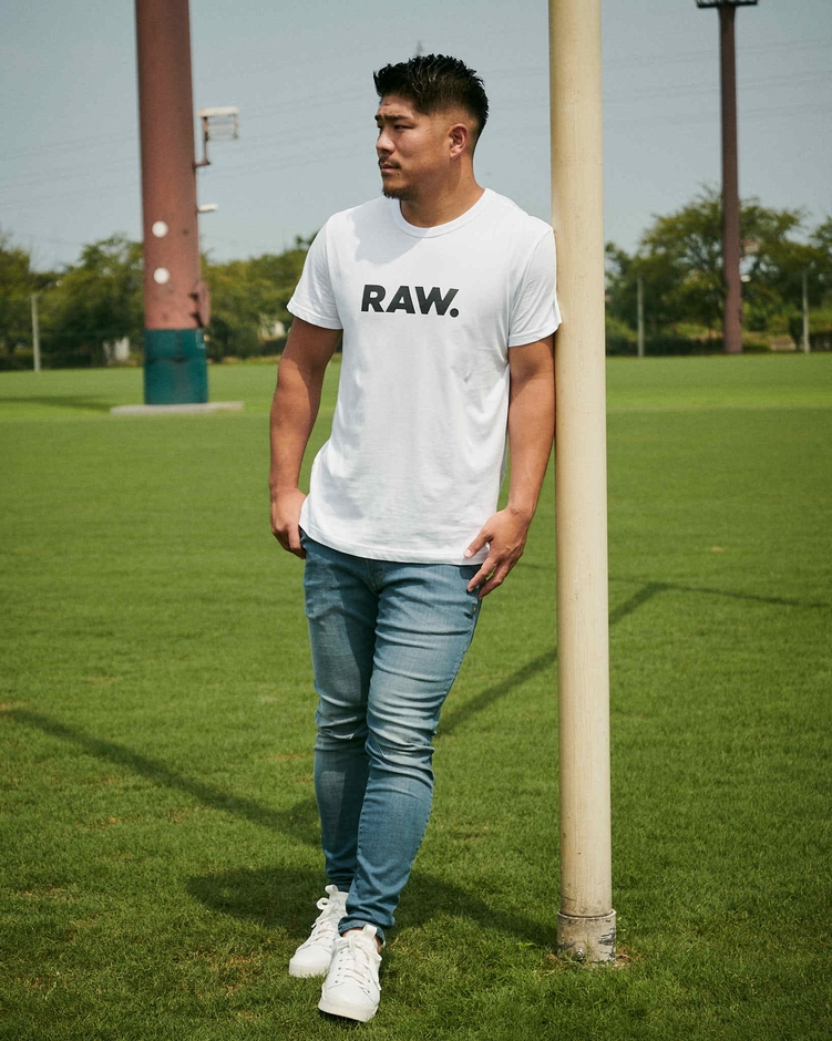 『この度、ジースターのアンバサダーに就任いたしましたことをとても嬉しく思っております。ジースターのストレッチが効いているジーンズや立体裁断による着心地の良さ、また体型が綺麗に見えるシルエットが好きで、長年愛用してまいりました。私のような体型のアスリートは体型に合った洋服がなかなかなく、普段着る服に困っている方が多いのです。ジースターの服はその点どんな悩みも解決できるので、これからジースターファンを増やしていきたいと思っています。同時に、ラグビーについてもより多くの方に知ってもらえたらと思っています。ちなみに僕のサイズは、ジーンズはウエストは33、レングスは32で、トップスはLサイズかXLサイズです!!皆さんサイズ選びの参考にしてください。』