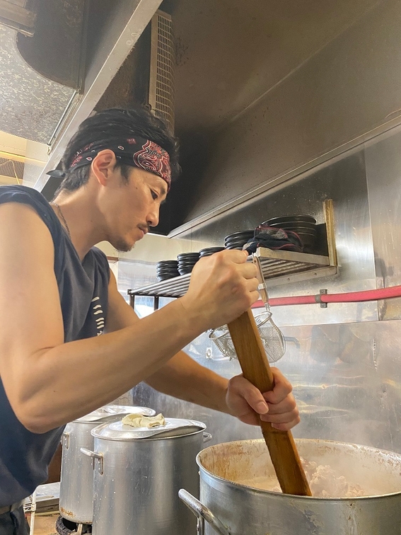 内容 :店舗の大型寸胴で炊いたマイルドな家系スープと