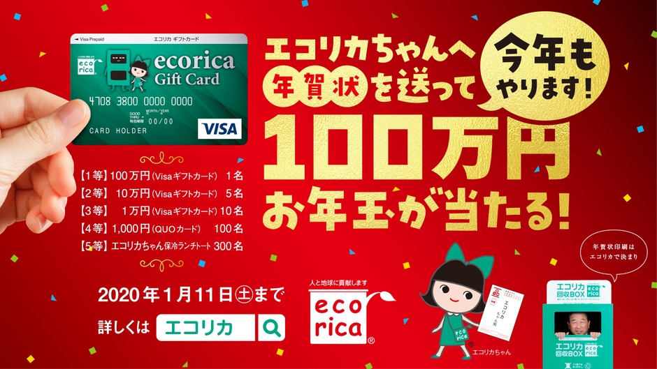 今年もやります! 「エコリカちゃんへ年賀状を送って100万円お年玉が当たる!」 キャンペーン実施中!