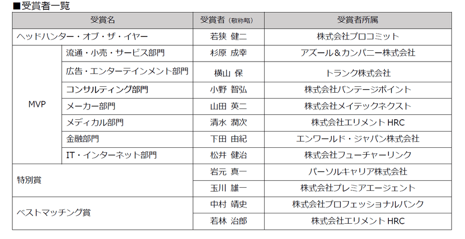 ・特別賞:各視点で、評価されたヘッドハンター