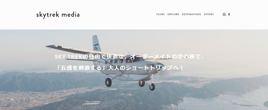 小型航空機チャーターサービス「SKY TREK(スカイトレック)」を運営する株式会社SKYTREK(本社:東京都港区、代表取締役社長:永堀 敬太)は、2019年2月21日(木)より、「SKY TREK」初の“空飛ぶ冒険”を提案するオウンドメディア『SKY TREK TOURS(スカイトレックツアーズ)』(https://tours.skytrek.co.jp)および旅にまつわる記事や最新情報を発信する『sky trek media(スカイトレックメディア)』(https://media.skytrek.co.jp)をオープンしたことをお知らせします。