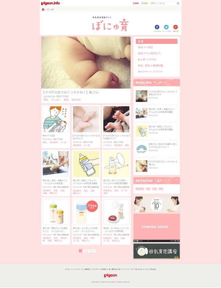 ピジョン母乳育児ポータルサイト「ぼにゅ育」を開設、2016年3月3日からオーブン