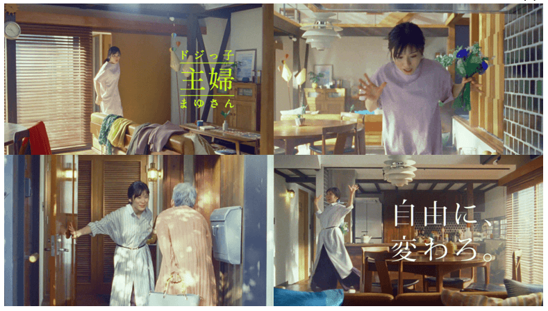 本動画シリーズでは、女優・松岡茉優さんが様々な職業の女性に変化(へんげ)します。第一弾の何事においても“ほどほど”を心掛けるOL「マユさん」に続き、第二弾ではドジっ子な主婦の「まゆさん」を演じます。