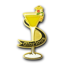 黄金色のカクテル部分に透明色を用いて仕上げ、「グロリアス」の名前入りの黒いリボンをまとったオーダーメイド作品は、本物そのままのリアルな仕様で再現されました。完成品は、優勝祝賀会に集まった同業者やメーカーの方たちに配られたそうです。「とても気に入っています。急ぎでの注文でしたが、とても丁寧に対応して頂きました」とおっしゃる松尾様。高品質な出来栄えに加え、当社の対応の良さにもご満足のご様子でした。思い出のカクテルを常に身に付けておける…、そんなことも可能にしてくれるピンバッジの素晴らしさを再認識することができました。